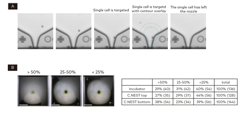 在這篇文章中,C.NEST細(xì)胞培養(yǎng)系統(tǒng)顯示了不同細(xì)胞培養(yǎng)的能力 (圖3和圖4)。因此,在CLD過程中應(yīng)用C.NEST是一個(gè)很好的選擇。我們已經(jīng)證實(shí),單細(xì)胞可以在C.NEST培養(yǎng)的384孔板中正常生長(圖3),96孔和24孔培養(yǎng)效果良好 (圖4)。表明克隆也可以擴(kuò)大到96孔和24孔板,在同一個(gè)C.NEST室中進(jìn)行靜態(tài)或混合培養(yǎng)。此外,多尺度微孔板可應(yīng)用于多種領(lǐng)域,如384孔板可用于病毒細(xì)胞的篩選融合實(shí)驗(yàn),96孔板用于藥物發(fā)現(xiàn)中的細(xì)胞球形成,24孔板用于工藝開發(fā)中的培養(yǎng)基篩選。小型化的檢測方法可以減少大規(guī)模試驗(yàn)的耗材成本,被認(rèn)為是在醫(yī)學(xué)、生物技術(shù)等領(lǐng)域應(yīng)用的一個(gè)趨勢。