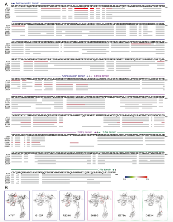 Fig 1 在AlaRS中促進CMT發生的突變分布